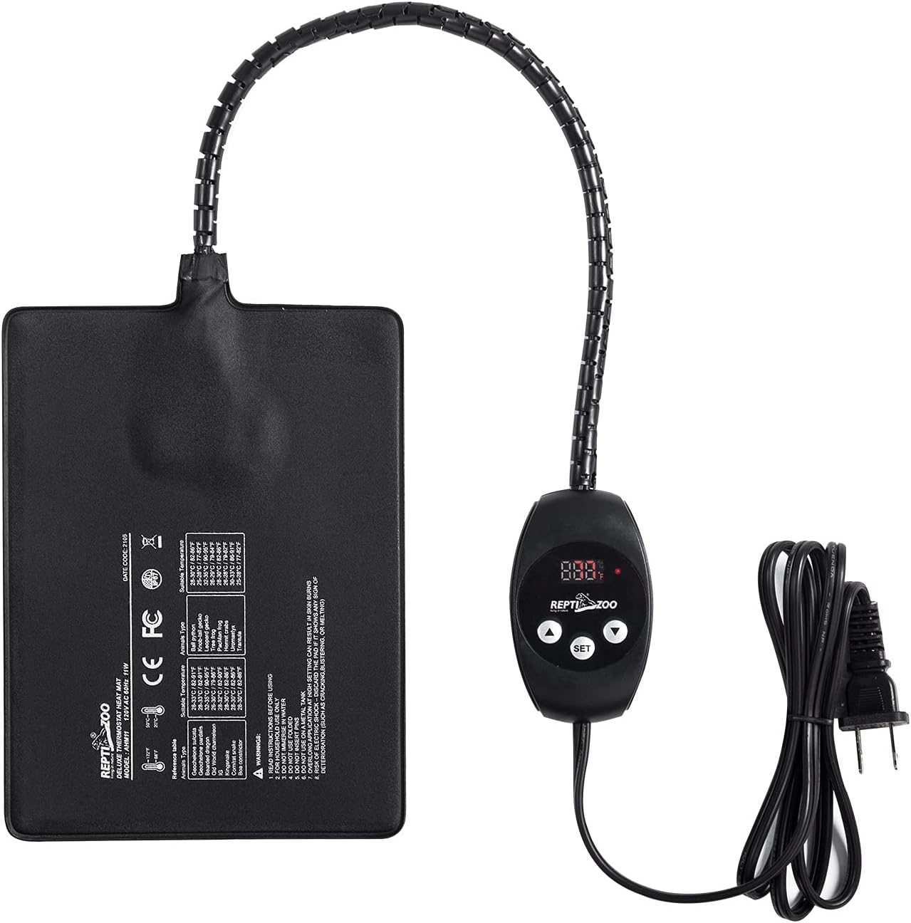 REPTI ZOO 恆溫加熱墊 Deluxe Thermostat Heat Mat 11W - 獨立可調溫控制器 - °C 和 °F 隨意切換 - 易於設置,溫度控制範圍為20-50°C - 內置溫控智能芯片 - 11W 150x200mm / 6x8in