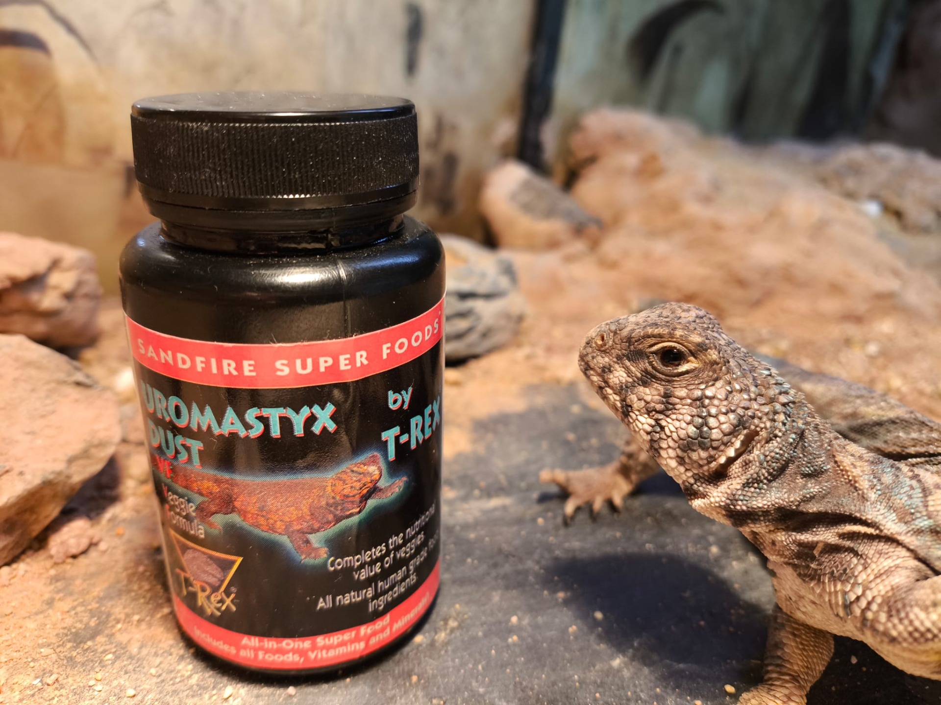 T-Rex 王者蜥補充劑是一種王者蜥的鈣質補充品,添加了維生素和礦物質。如果你正在給你的王者蜥 餵食蔬菜,就不需要使用各種不同的補充品。只需在餵食前將這種粉末撒在蔬菜上,結合蔬菜的營養價值,這種補充劑將完成你寵物的食品需要的維生素、營養素、礦物質和微量元素需求。 成分包括大麻籽粉、苜蓿粉、無花果粉、蜂蜜粉、脫脂小麥胚芽粉、蜂花粉、啤酒酵母、碳酸鈣、酪蛋白鈣(孤立蛋白質的來源)、螺旋藻、磷酸二鈣、血藻、萬壽菊提取物、玫瑰果粉、迷迭香提取物、絲蘆萎提取物、天然混合生育酚(作為防腐劑)、維生素A醋酸鹽、D-活化動物固醇(維生素D-3的來源)、干燥麴菌(Aspergillus Oryzae)發酵提取物、干燥麴菌(Aspergilus Niger)發酵提取物、干燥乳酸菌發酵產品、干燥嗜熱雙歧桿菌發酵產品、干燥長雙歧桿菌發酵產品、干燥屎腸球菌發酵產品和干燥枯草桿菌發酵產品。 MADE IN THE USA 粗蛋白質,最小值 17% 粗脂肪,最小值 3% 粗纖維,最大值 12% 水分,最大值 8% 灰分,最大值 8% 鈣 (Ca) 最小值 2.3% 鈣 (Ca) 最大值 2.7% 磷 (P),最小值 .7% 維生素A醋酸鹽 20,000 IU/公斤 維生素D-3,最小值 4000 IU/公斤 使用方法:清洗蔬菜,並將王者蜥補充劑豐富地撒在上面,或者將蔬菜和王者蜥補充劑一起放入塑料袋或容器中混合。使用得越多,效果越好。不適合人類食用。