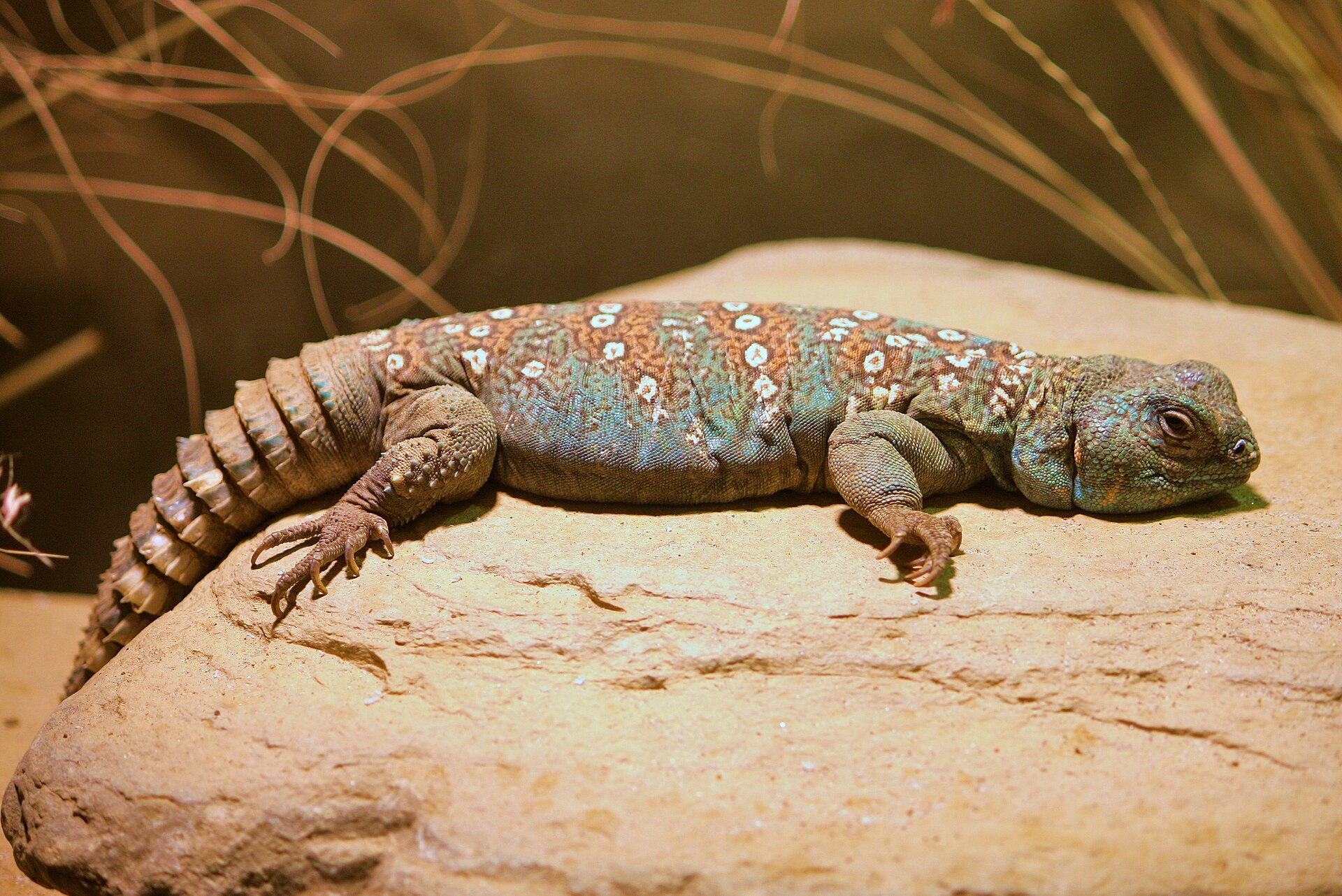 特色:孔雀王者蜥以其鮮豔的體色和獨特的孔雀眼狀斑點著稱。牠們的體色通常為綠色或藍色,背部的斑點在繁殖季節會變得更加鮮明。這樣的色調不僅使牠們在自然環境中具有偽裝功能,還能在繁殖期吸引配偶。牠們主要以植物為食,能夠適應極端乾旱的環境,並善於挖掘洞穴作為棲息地。