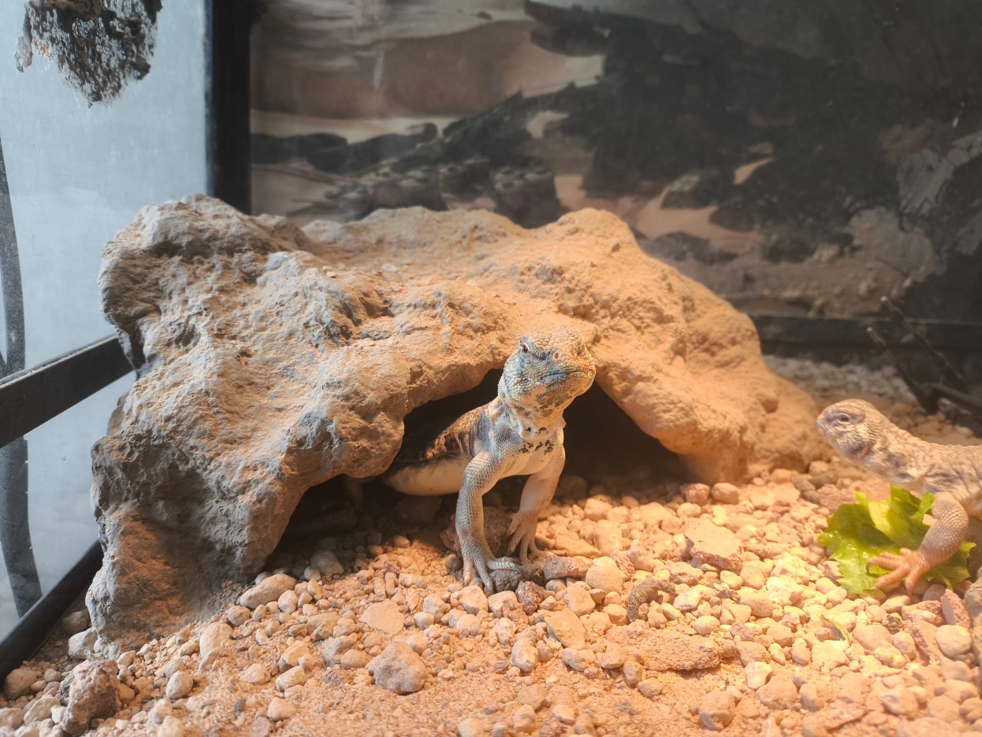 特色:湯馬士王者蜥是Uromastyx家族中體型較小且相對稀有的品種之一。牠們的體色以灰褐色、淺藍色和淺綠色為主,並帶有淡淡的斑紋,這些顏色有助於牠們在岩石地形中偽裝自己。相較於其他色彩鮮豔的王者蜥,湯馬士王者蜥的顏色較為樸素,但牠們的靈活性和適應性使牠們能夠在極端乾旱的環境中生存。這種王者蜥以其小巧且靈活的體型聞名,牠們擅長於迅速穿越崎嶇的地形。